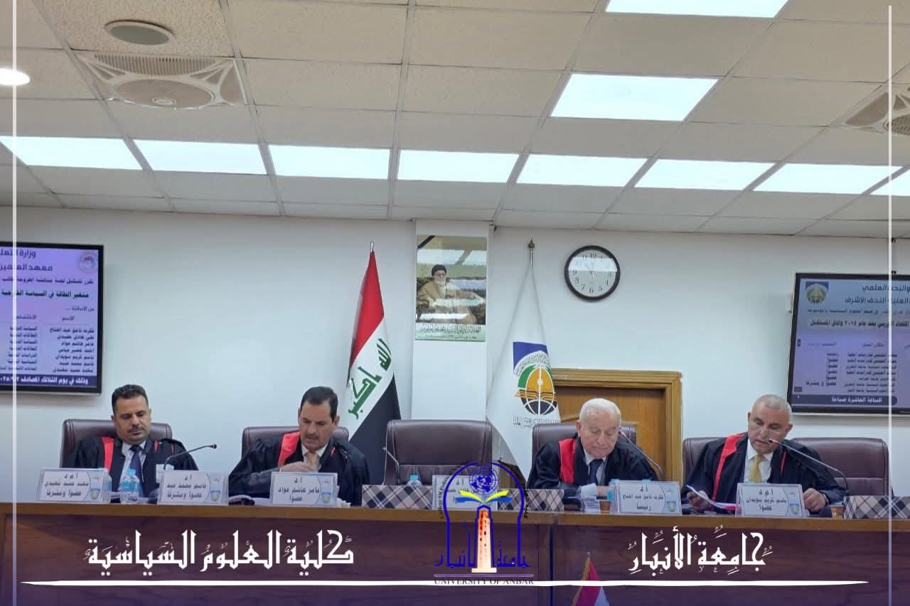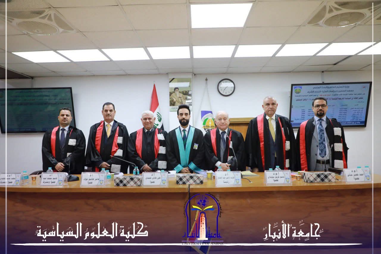 شارك معاون العميد للشؤون العلمية في كلية العلوم السياسية بجامعة الأنبار، الأستاذ المساعد الدكتور مهند حميد مهيدي، في لجنة مناقشة أطروحة الدكتوراه الموسومة:
