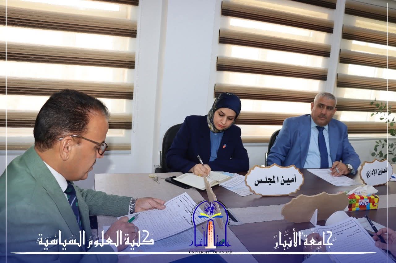 برئاسة الأستاذ الدكتور أحمد علي محمد عميد كلية العلوم السياسية، عقد مجلس الكلية جلسته الاعتيادية يوم الأحد الموافق 28 / 9 / 2025، وبحضور السادة أعضاء المجلس.